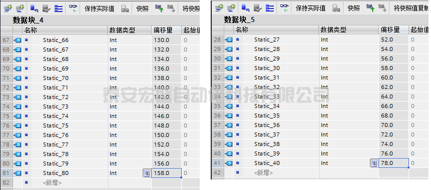 然后在西門子PLC內(nèi)建立數(shù)據(jù)塊_4和數(shù)據(jù)塊_5兩個DB,號碼分別是DB101、DB102,DB101寫入到AB的PLC,DB102接收AB的PLC數(shù)據(jù),都需要取消優(yōu)化訪問,字節(jié)數(shù)據(jù)與AB的PLC對應(yīng),如下圖,同樣新建立的DB須要下載后重啟PLC才會生效。