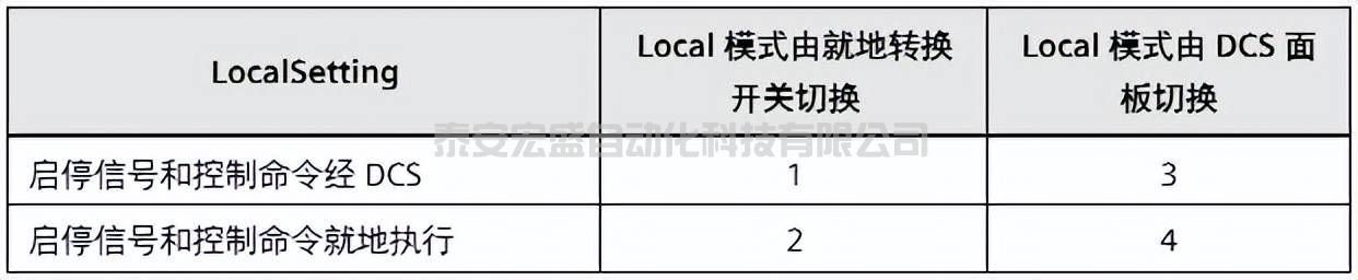 談到電機(jī)肯定會(huì)涉及到模式切換:就地、遠(yuǎn)程。遠(yuǎn)程/就地模式的切換及就地啟動(dòng)方式,各現(xiàn)場(chǎng)因?qū)嶋H電氣控制回路設(shè)計(jì)不同,需求也可能不盡相同。例如有的現(xiàn)場(chǎng)遠(yuǎn)程/就地切換通過(guò)現(xiàn)場(chǎng)轉(zhuǎn)換開(kāi)關(guān)實(shí)現(xiàn),就地啟停不經(jīng)過(guò)PLC,而別的現(xiàn)場(chǎng)同樣切換方式下可能就地啟停命令經(jīng)PLC發(fā)出。還有的現(xiàn)場(chǎng)遠(yuǎn)程/就地模式切換在DCS側(cè)面板中實(shí)現(xiàn),現(xiàn)場(chǎng)沒(méi)有轉(zhuǎn)換開(kāi)關(guān)。MotL充分考慮了這種需求,通過(guò)LocalSetting設(shè)置為不同的值可以滿足不同的應(yīng)用場(chǎng)合。如下表所示: