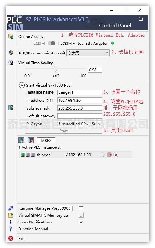 (4)打開(kāi)PLCSIM-Advanced,依次按照步驟進(jìn)行設(shè)置: