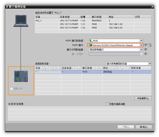圖2 網(wǎng)卡列表2.PLCSIM-Advanced使用