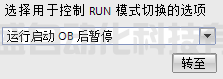 對于運行啟動OB后暫停,如果沒有啟動OB,則重啟后暫停。如果需要取消掃描控制的功能,需要將掃描控制改為連續(xù)掃描,然后點擊操作面板的“RUN”即運行按鈕。