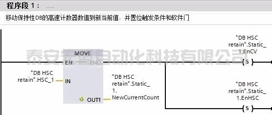 4在 OB1 中編程 CTRL_HSC_EXT ,將保存的值設(shè)為當(dāng)前值后,復(fù)位觸發(fā)位。