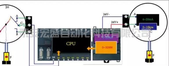 圖4是使用西門子S7-200 PLC讀取壓力變送器壓力值的接線圖例,這是一種最基本的使用方法,左邊是開關(guān)量的,右邊是模擬量的,不同的信號類型要接到PLC不同輸入端。