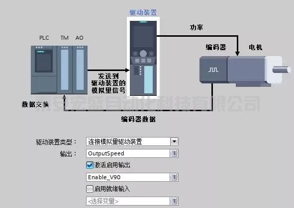 使用 V90 的速度控制功能可以與 S7-1500 運動控制功能配合使用,接收 S7-1500 模擬量模塊發(fā)出的+-10V 模擬量信號做為速度給定,并通過 PTO 功能反饋位置信號給 S7-1500,在 S7-1500PLC 中實現(xiàn)閉環(huán)位置控制。