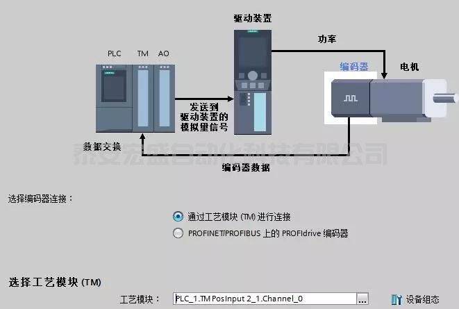 組態(tài)編碼器連接時選擇通過工藝模塊(TM)進行連接,并且在選擇工藝模塊中選擇高速計數(shù)器通道 0。