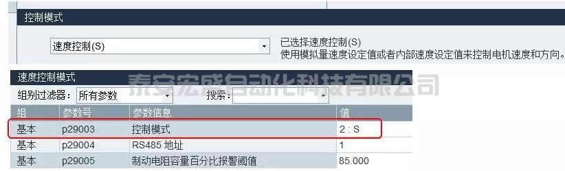 本中使用 SINAMICS V-ASSISTANT 軟件來設置 V90 的參數(shù)。首先要設置 V90 操作模式為速度模式,即設置參數(shù) p29003 為 2。