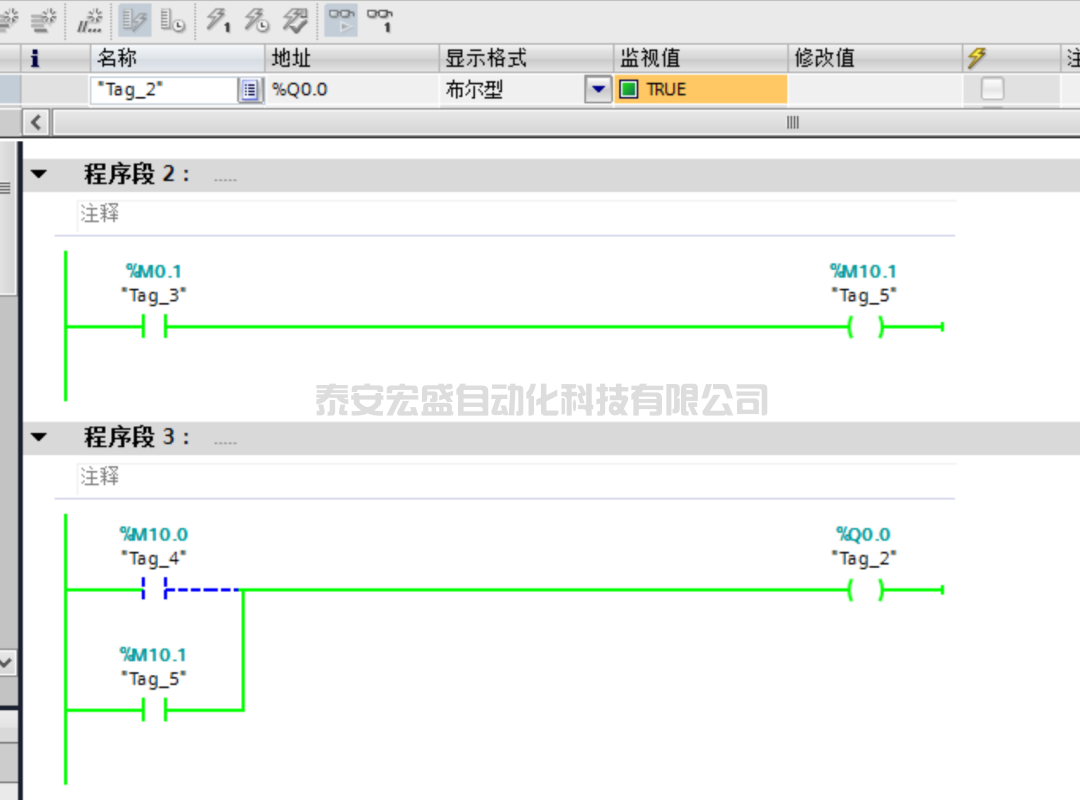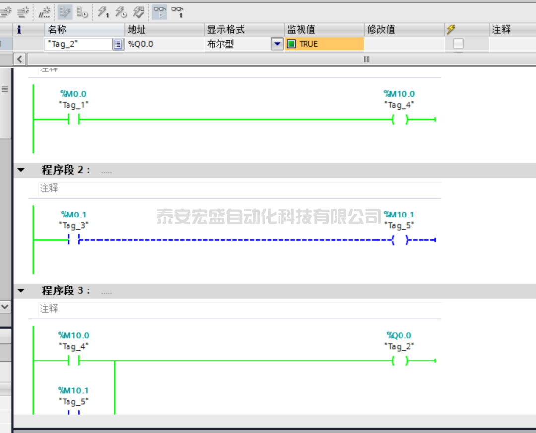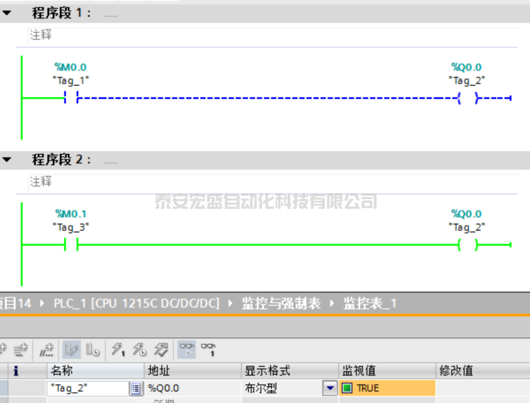 下面進(jìn)行如下操作,啟動(dòng)仿真PLC,將啟動(dòng)監(jiān)控,將梯形圖中M0.0修改為1,M0.0控制的線圈Q0.0得電,在監(jiān)控表中看到Q0.0的監(jiān)視值為FALSE。然后將M0.0修改為0,將M0.1修改為1,M0.1控制的線圈Q0.0得電,在監(jiān)控表中看到Q0.0的監(jiān)視值為TRUE。為什么會(huì)出現(xiàn)M0.0觸點(diǎn)不能控制線圈Q0.0值為TRUE,而M0.1觸點(diǎn)可以控制線圈Q0.0值為TRUE,為什么會(huì)這樣呢?如果想知道答案接著往下看。