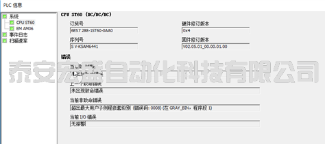 進一步監(jiān)控PLC信息,可以看到圖6的非致命錯誤報警:超出最大用戶子例程嵌套級別(錯誤碼:0008)