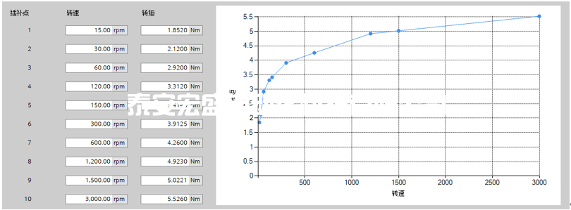 變頻器按照設置的10個測量速度,逐步將電機加速至設定最大轉速,測量摩擦轉矩并將摩擦轉矩寫入摩擦特性曲線的控制點上。