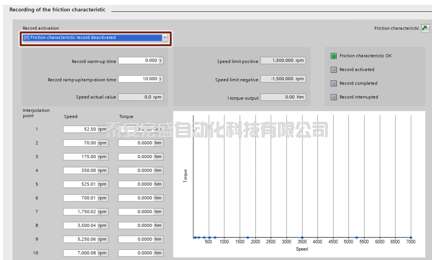 SINAMICS S120 變頻器調試結束后,默認會將控制點的轉速設為與電機額定轉速相匹配的值,所有控制點的摩擦轉矩仍為零。根據自己設備應用需求可靈活調整轉速測試值,激活摩擦特性曲線并執(zhí)行測量。