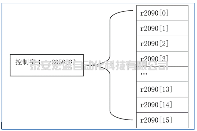 控制字1對(duì)應(yīng)的參數(shù)為 r2050[0],該字每一位對(duì)應(yīng)的參數(shù)分別為r2090.0-r2090.15。