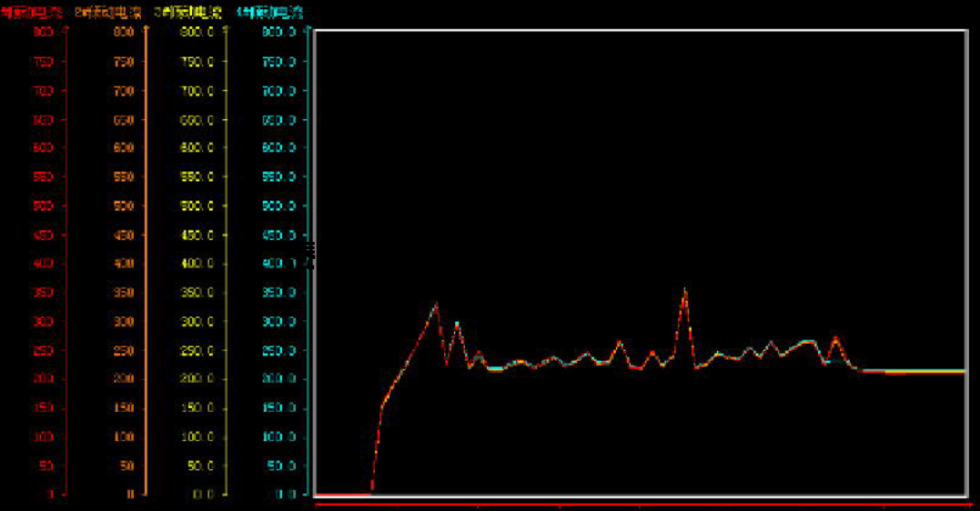 實際測試效果能夠很好的滿足工藝要求,啟動過程中皮帶平穩(wěn)建立張力,然后進入穩(wěn)定的勻速運行。設備運行過程中3臺電機的輸出轉矩曲線如下圖所示: