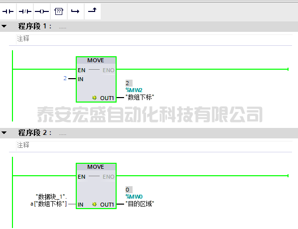在數(shù)據(jù)塊的聲明中,數(shù)組只聲明了 2 個數(shù)組元素,下標為 0-1,下標為 2 超出了數(shù)據(jù)塊中聲明變量的范圍,故報故障“區(qū)域長度錯誤”。