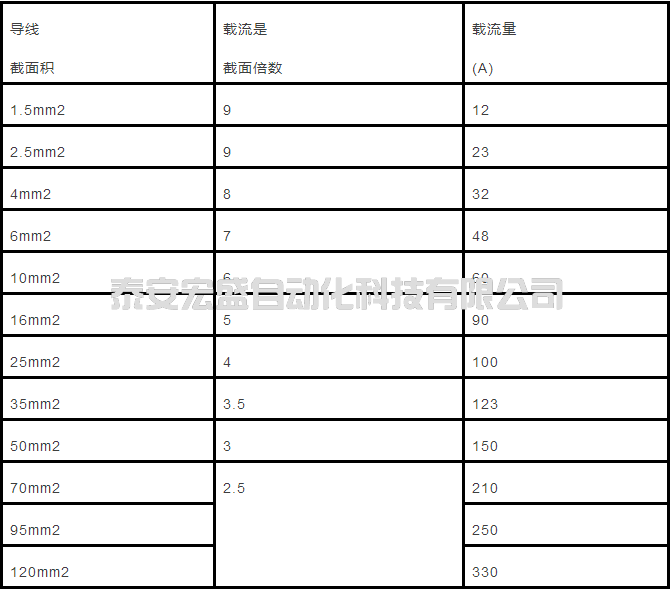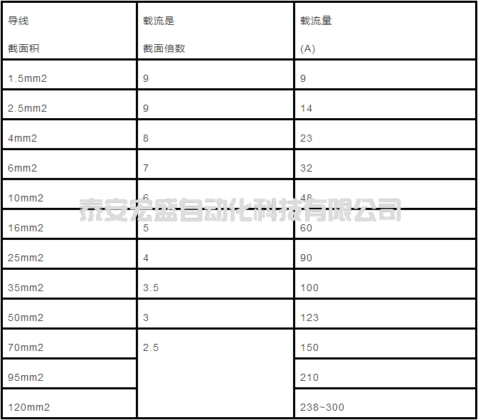 嚴(yán)格要求就用導(dǎo)線截面積乘以4作為載流量。載流量小,導(dǎo)線就要得多,成本就高。為了降低成本,又保證安全,很多家裝在不是封閉布線時(shí)就采用導(dǎo)線截面積乘以5倍或者6倍來提高導(dǎo)線的載流量。