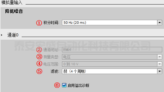 ⑤ “濾波”:模擬值濾波可用于減緩測量值變化,提供穩(wěn)定的模擬信號。模塊通過設(shè)置濾波等級(無、弱、中、強)計算模擬量平均值來實現(xiàn)平滑化。