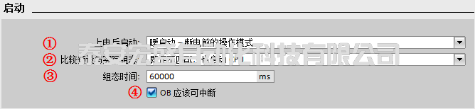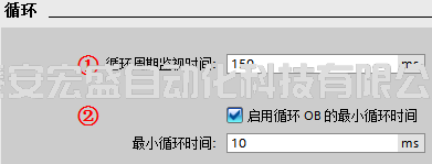 ① “循環(huán)周期監(jiān)視時間”:設(shè)置程序最大的循環(huán)周期時間,范圍為 1~6000 ms,默認(rèn)值為150 ms。超過這個設(shè)置時間,CPU 會報故障。超過 2 倍的最大循環(huán)周期檢測時間,無論是否編程時間錯誤中斷 OB80,CPU 都會停機。在編程了時間錯誤中斷 OB80 后,當(dāng)發(fā)生循環(huán)超時時 CPU 將響應(yīng)觸發(fā)執(zhí)行 OB80 的用戶程序,程序中可使用指令“RE_TRIGR” 來重新觸發(fā) CPU 的循環(huán)時間監(jiān)控,最長可延長到已組態(tài)“循環(huán)周期監(jiān)視時間”的 10 倍;