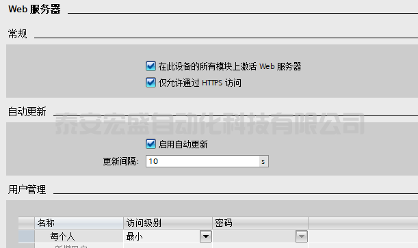 激活“啟用使用該接口訪問 Web 服務(wù)器”,則可以通過該接口訪問集成在 CPU 內(nèi)部的 Web 服務(wù)器。