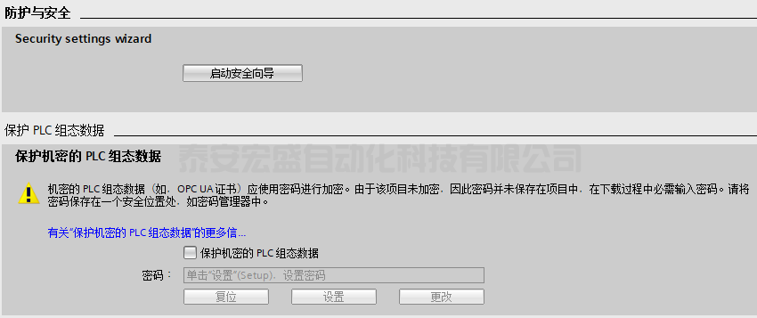 “啟動安全向?qū)А保篤4.5 開始支持。此按鈕可以啟動安全向?qū)?,設(shè)置防護與安全相關(guān)參數(shù),如圖 PLC 安全向?qū)гO(shè)置。