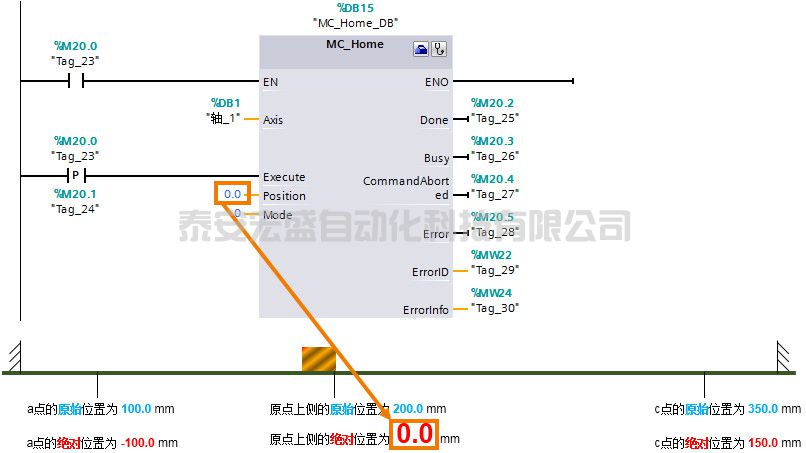 以下圖為例進(jìn)行說明。該模式下的 MC_Home 指令觸發(fā)后軸并不運(yùn)行,也不會(huì)去尋找原點(diǎn)開關(guān)。指令執(zhí)行后的結(jié)果是:軸的坐標(biāo)值更直接新成新的坐標(biāo),新的坐標(biāo)值就是 MC _Home 指令的“Position”管腳的數(shù)值。例子中,“Position”=0.0mm,則軸的當(dāng)前坐標(biāo)值也就更新成了 0.0mm。該坐標(biāo)值屬于“絕對(duì)”坐標(biāo)值,也就是相當(dāng)于軸已經(jīng)建立了絕對(duì)坐標(biāo)系,可以進(jìn)行絕對(duì)運(yùn)動(dòng)。