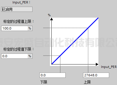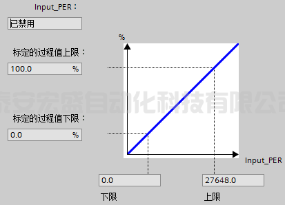 b. 如果過程值與模擬量輸入值成正比,則將使用上下限值對(duì)來標(biāo)定 Input_PER。