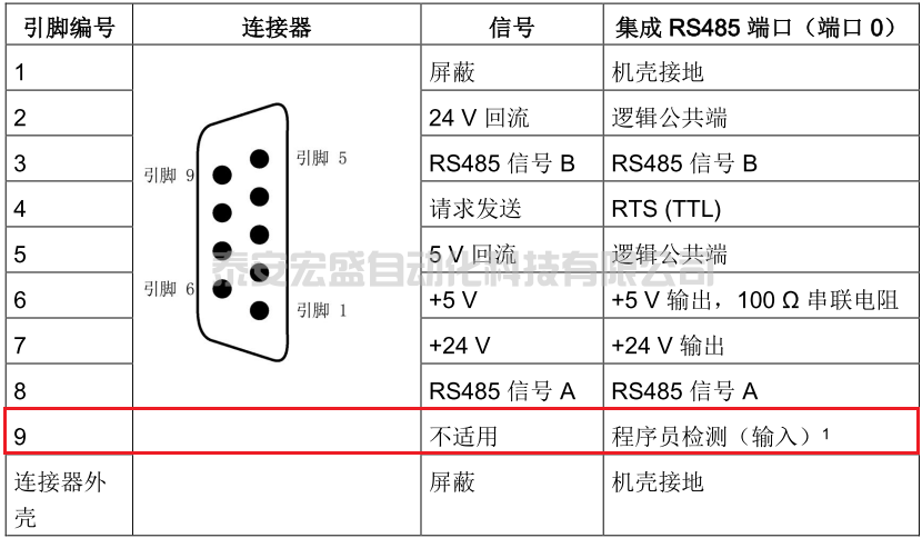 圖1.S7-200 SMART CPU 集成 RS485 端口的引腳分配