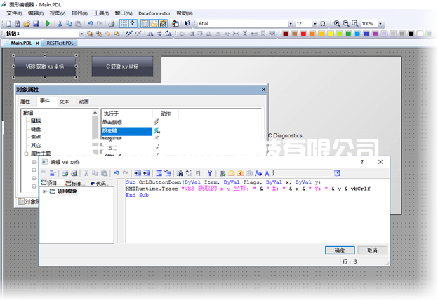 HMIRuntime.Trace "VBS 獲取的 x y 坐標:" & " X: " & x & " Y: " & y & vbCrlf