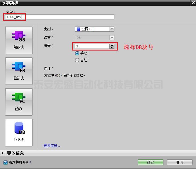 1.2 創(chuàng)建并定義 S7-300 的接收數(shù)據(jù)區(qū) DB 塊。
