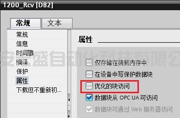 注意:如果在 S7-1200 一側(cè)使用 DB 塊作為通信數(shù)據(jù)區(qū),必須將 DB 塊定義成非優(yōu)化塊,否則會造成通信失敗。