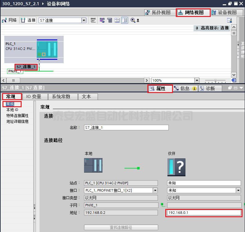 (4)在“網(wǎng)絡(luò)視圖”中,鼠標選中剛剛生成的"S7_連接_1",在屬性的常規(guī)選項卡中的"常規(guī)"欄,可查看創(chuàng)建的連接名稱和連接路徑,如圖 10 所示。
