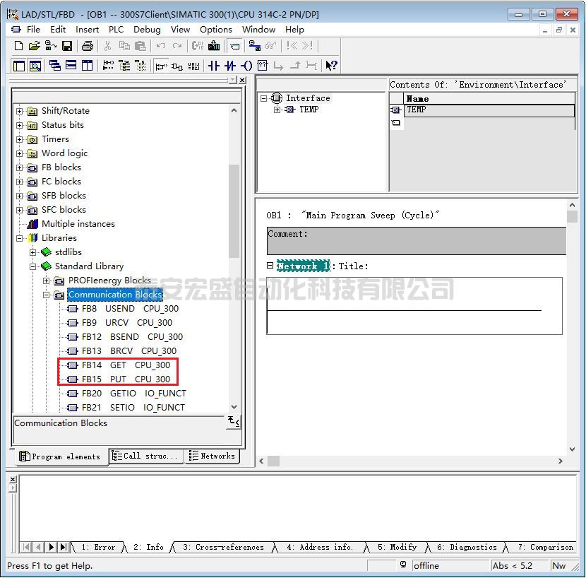 如果是 S7-400 PN/CP,需要插入 SFB 14 GET 與 SFB 15 PUT,位置如圖 80 所示。