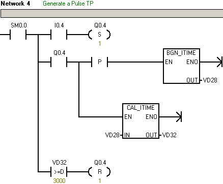 通過激活(下降沿)輸入點 I0.4,輸出點 Q0.4 獲取一個持續(xù) 3 秒(3000 ms)的脈沖。