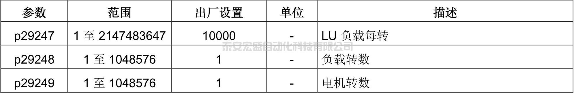 P29247為負載每轉(zhuǎn)的LU值,其可以自己定義。目的是讓負載每轉(zhuǎn)的位移單位與EPOS中的LU建立關系,例如:負載每轉(zhuǎn)10mm,P29247設置為10000LU,也就是10mm=10000LU,那么設定1LU,負載會位移0.001mm(=1um)