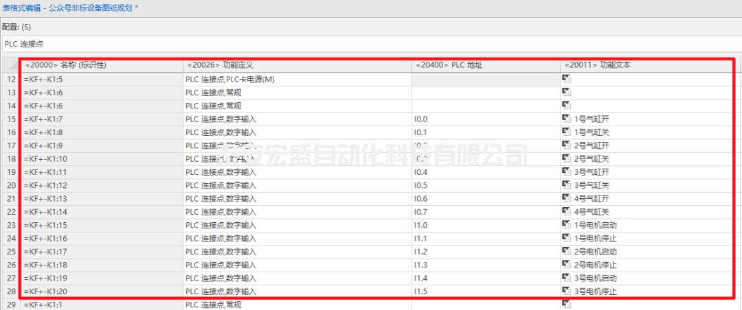 然后打開規(guī)劃好的有PLC地址與功能文本的表格進行復制,粘貼到EPLAN項目中表格式編輯對應的配置列中,即可完成IO地址與功能文本的批量導入,如下圖所示。