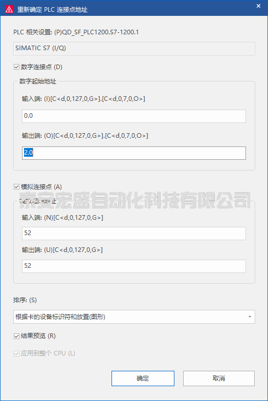 在“重選確定PLC連接點地址”界面下方勾選結果預覽,然后點擊確定。可在編制前進行結果的展示,如下圖所示。