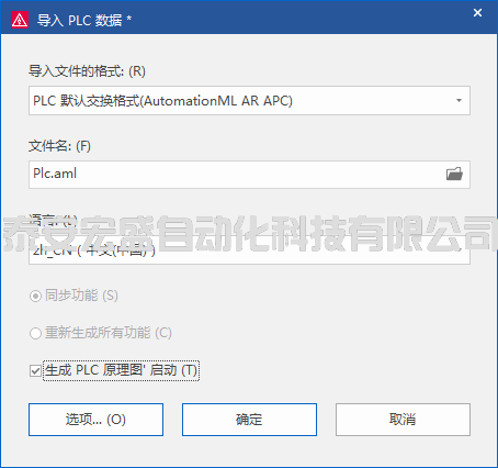 2) 導入:文件->導入->項目數據->PLC數據,選擇相應的格式,以及中間文件,同時勾選生成PLC原理圖。指定好頁面后即可自動生成總覽圖,如下圖所示。