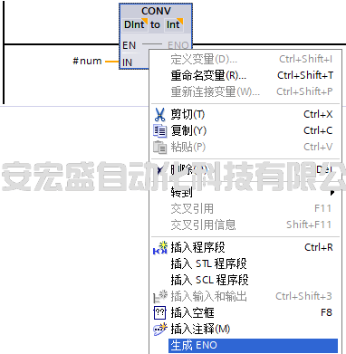 非常簡單,對于LAD/FBD中調(diào)用的基本指令,可以直接在指令的右鍵菜單中生成ENO,即激活ENO。如圖5所示。