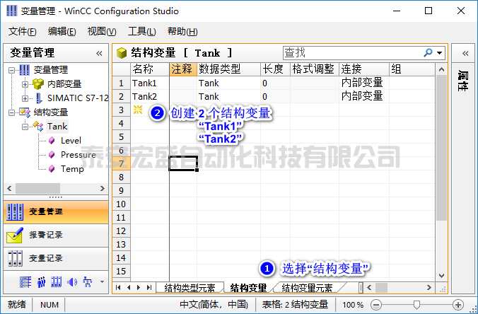 在變量管理器中創(chuàng)建結(jié)構(gòu)類型,并為結(jié)構(gòu)類型創(chuàng)建結(jié)構(gòu)類型元素,如圖 1 。