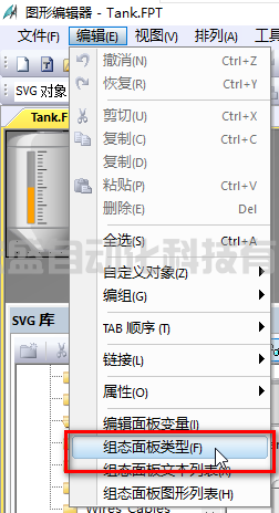 在畫面編輯器中點(diǎn)擊編輯菜單選擇“組態(tài)面板類型”,如圖 4 。