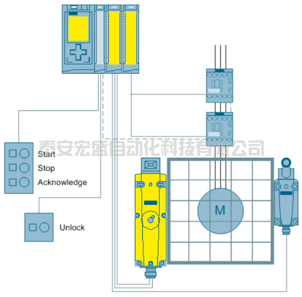 為防止在機器作業(yè)時進入危險區(qū)域,特別安裝了防護門并對其進行監(jiān)視。機器組件的超時運行可能會導致危險,因此已對防護門安裝互鎖,只能在機器完全停止后才能開啟。