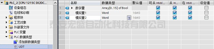 這里通過建立PLC數(shù)據(jù)類型方式把IO區(qū)數(shù)據(jù)與UDT中數(shù)據(jù)一 一對(duì)應(yīng),1215CPU中輸入輸出分別占用6個(gè)字節(jié)的數(shù)據(jù),這樣建立如下圖所示UDT。