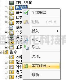 1)在指令樹(shù)的Project(項(xiàng)目)中,以鼠標(biāo)右鍵單擊Program Block(程序塊),在彈出的快捷菜單中選擇Library Memory。如圖4所示: