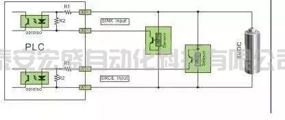 SINK漏型為電流從輸入端流出,那么輸入端與電源負(fù)極相連即可,說明接口內(nèi)部的光電耦合器為單端共點(diǎn)為電源正極,可接NPN型傳感器。