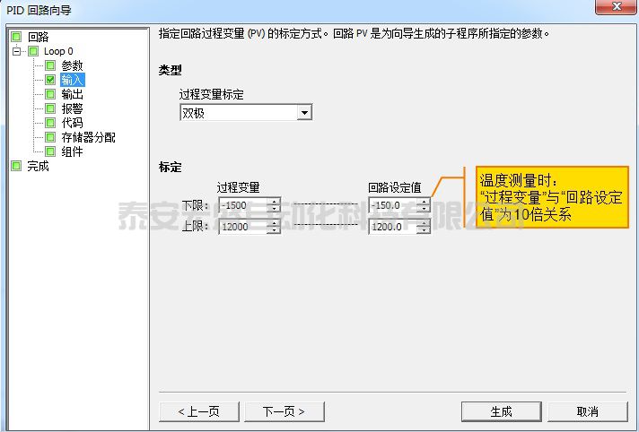 又如一個溫度控制的PID系統(tǒng),溫度值直接由熱電偶測量,輸入到熱電偶模塊轉(zhuǎn)換為溫度 值。熱電偶為J型,其測量范圍為 -150.0°C - 1200.0 °C。則可按如下設(shè)置給定的范圍。