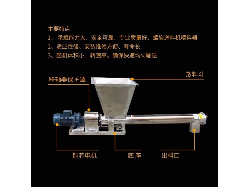 6、喂料部分采:不銹鋼螺桿,螺桿不粘料;用通用型螺桿接口,方便拆卸與螺桿替換,螺桿根部不會堆積物料。