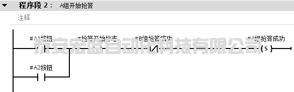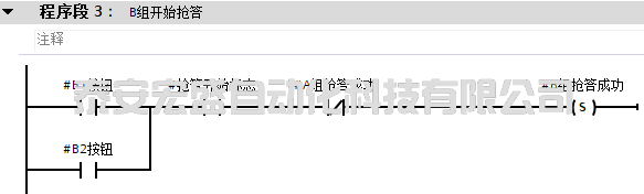 在該SCL的程序中,使用了IF…THEN…(條件執(zhí)行指令),它可以用中文的語言來進(jìn)行表達(dá),如果<條件>成立則執(zhí)行該程序語句。以該SCL程序中的第一句進(jìn)行舉例說明,它實(shí)現(xiàn)的功能是,如果開始按鈕按下,則置位搶答開始標(biāo)志。