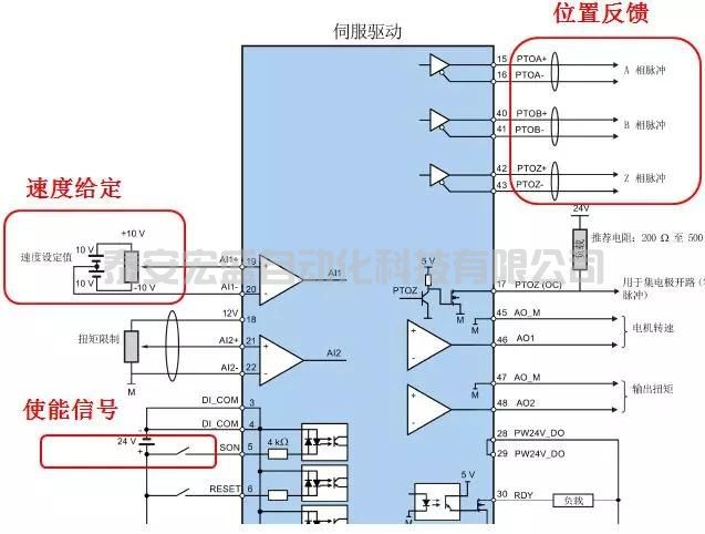 使用 V90 的速度控制功能可以與 S7-1500 運動控制功能配合使用,接收 S7-1500 模擬量模塊發(fā)出的+-10V 模擬量信號做為速度給定,并通過 PTO 功能反饋位置信號給 S7-1500,在 S7-1500PLC 中實現(xiàn)閉環(huán)位置控制。