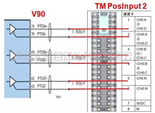 分別連接 V90 X8 端口的 15、16 端子到 TMPosInput 模塊 1、2 端子;40、41到 3、4 端子;42、43 到 5、6 端子。