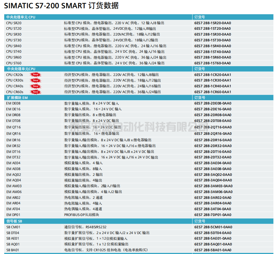 西門子S7-200SMART完整訂貨號已經(jīng)型號