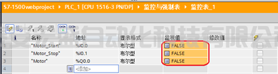 ----(4)正常監(jiān)控后就可以在監(jiān)視值中看到相應的數(shù)值:(以下是啟動按鈕未按下時的狀態(tài))