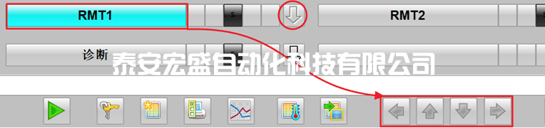 如圖1所示,四個方向按鈕有時候并不是都是綠色可操作狀態(tài),會隨著我們選擇不同的畫面而呈現(xiàn)不同的結(jié)果。其主要用于按鈕區(qū)帶有子層級畫面時的操作,若流程畫面的按鈕區(qū)不包含子層級,則四個按鈕均呈灰色不可操作狀態(tài)。如圖2所示:
